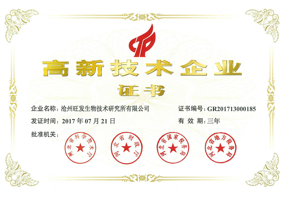 滄州旺發(fā)生物技術研究所有限公司創(chuàng)立于1993年,是集研發(fā)、生產、銷售于一體的微生態(tài)制劑生產“高新技術企業(yè)”、“國家知識產權優(yōu)勢企業(yè)”、“河北省農業(yè)產業(yè)化重點龍頭企業(yè)”、“河北省創(chuàng)新型中小企業(yè)”、“河北省專精特新中小企業(yè)”,目前,公司注冊資金1360萬元,生產占地80畝,擁有液、固態(tài)結合全自動發(fā)酵生產線及標準化全自動液態(tài)發(fā)酵、噴霧干燥生產線。